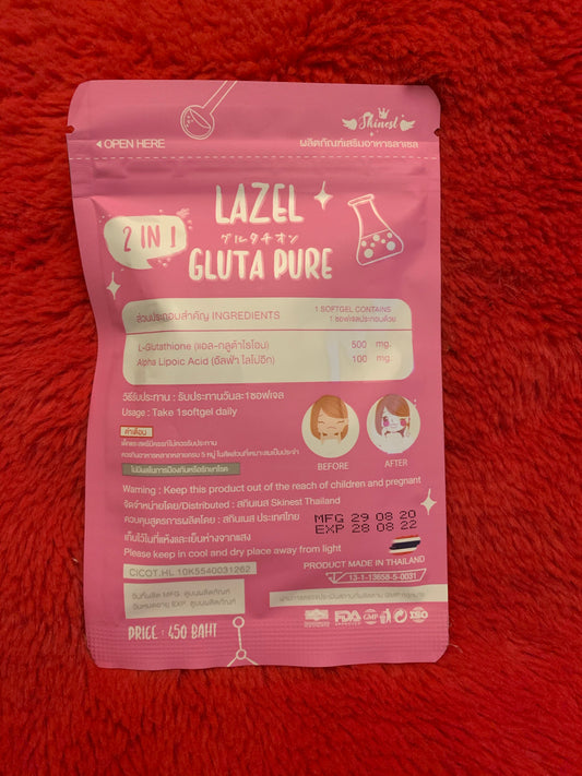Lazel Gluta Pure 30 softgels. Pure L-glutathione